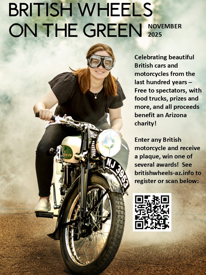 If you are interested in classic British cars or cycles, come and see the many classic variants available in the US. Talk with vehicle owners about the joys of ownership and membership in Arizona's various British car and cycle clubs.